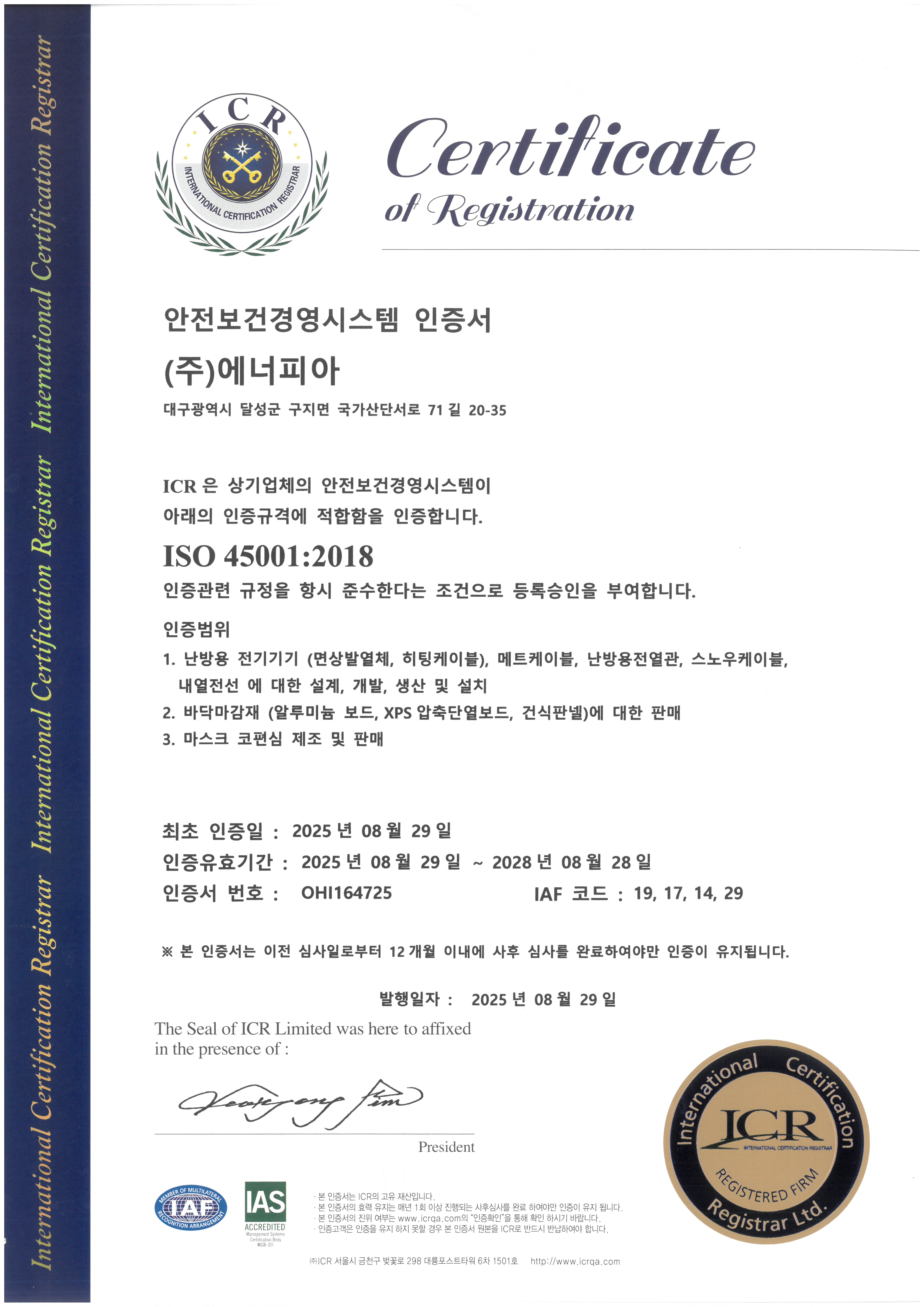 환경 경영 시스템 인증서 (ISO1400)