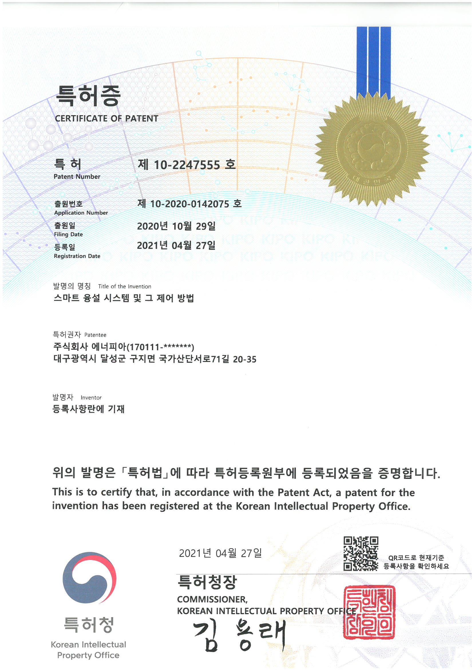 특허-제10-2247555호 (스마트 융설시스템 및 그 제어방법)
